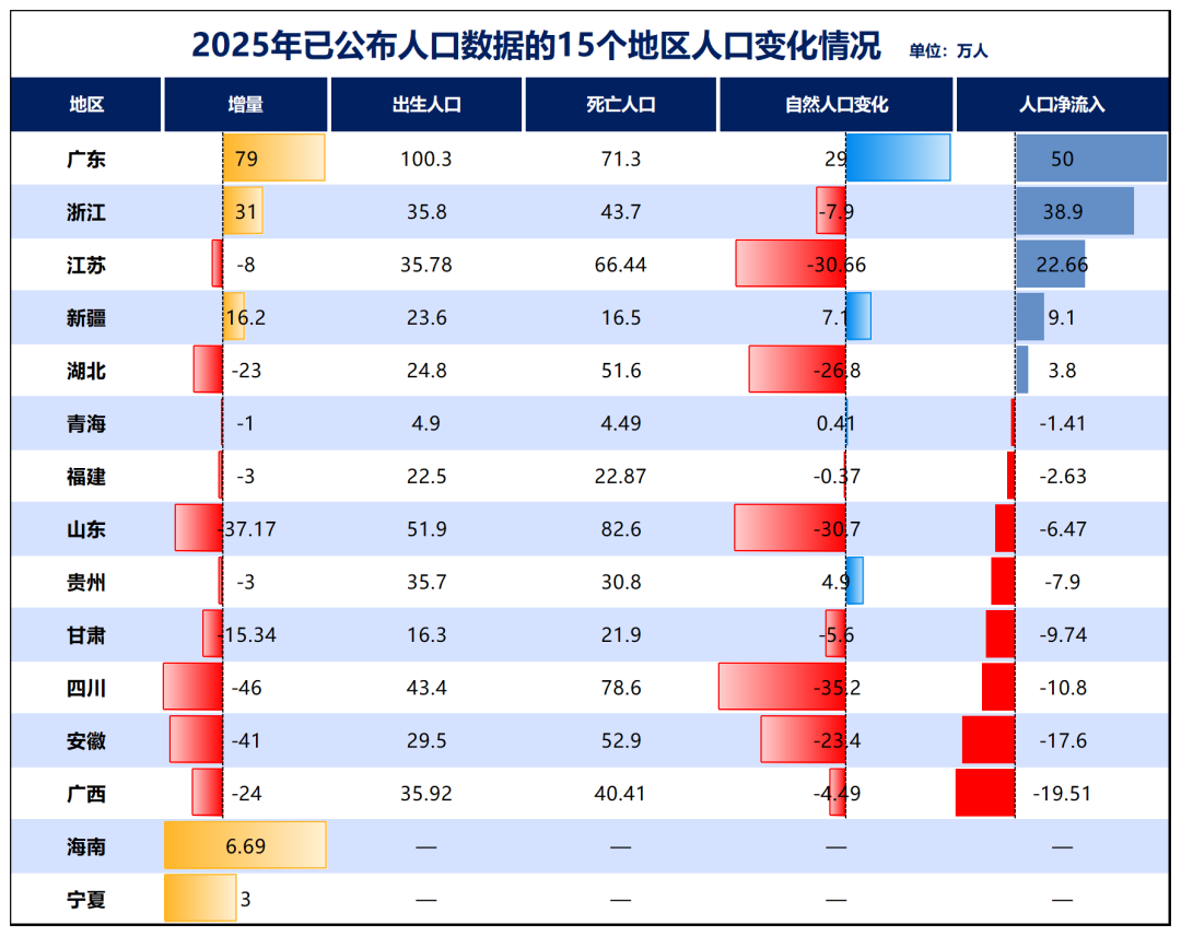 此中广东增量第一、浙江增量第二,江苏常住生齿初次负增加,四川常住生齿削减量暂居第一,这些本号之前均有阐发。