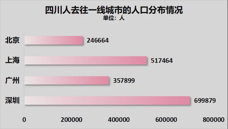 四川去往深圳的生齿有70万,去上海的有51。75万,去广州的有35。79万,去的有24。67万。