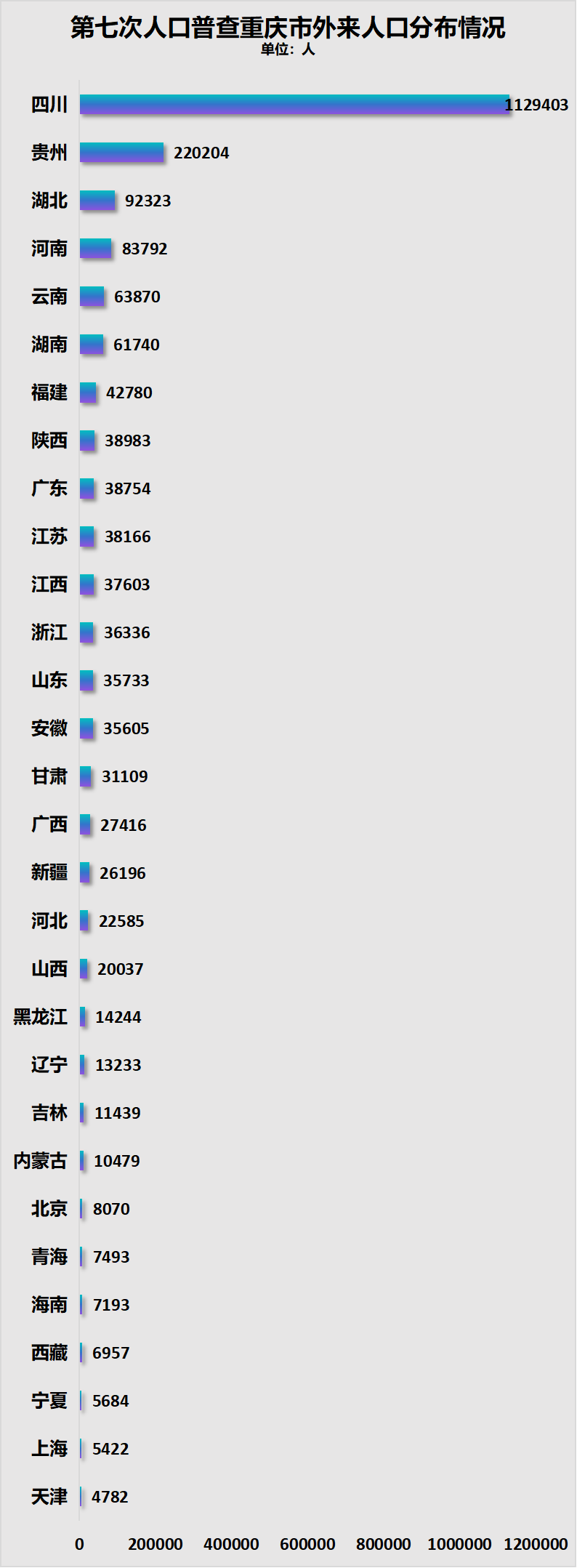当然,沉庆人也喜好去四川,四川披露的数据显示,其259万外来生齿中,沉庆人就有55。85万,占外来生齿的21。56%。